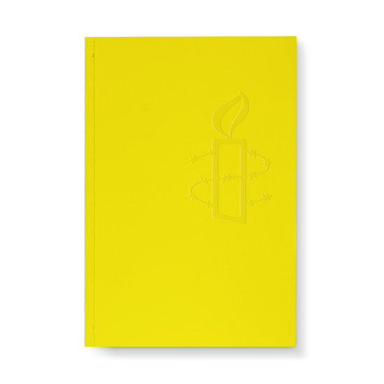 «Είναι καλύτερα να ανάψεις ένα κερί παρά να καταριέσαι το σκοτάδι». Το χαρακτηριστικό κερί – λογότυπο της Διεθνούς Αμνηστίας που είναι αποτυπωμένο στο σημειωματάριο συμβολίζει την ελπίδα για εξασφάλιση των ανθρώπινων ελευθεριών και δικαιωμάτων.