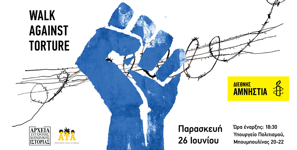 Στις 26 Ιούνιου διοργανώνουμε τον Περίπατο Ενάντια στα Βασανιστήρια στα πλαίσια της Παγκόσμιας Ημέρας Ενάντια στα Βασανιστήρια.